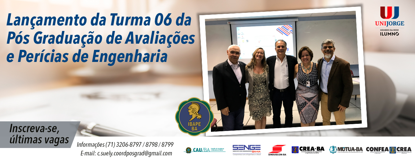 No dia 26 de abril de 2018, aconteceu a aula Inaugural da Pos Graduação de Perícias de Engenharia. Presentes ao evento, Amarilio Mattos (presidente do IBAPE/BA),<span class="excerpt-hellip"> […]</span>