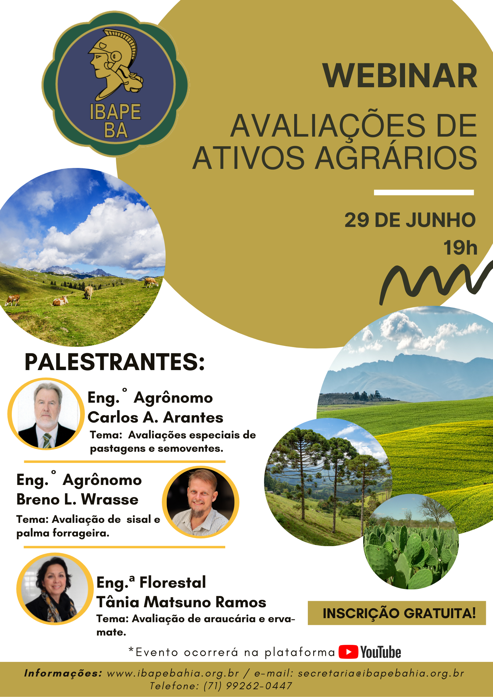 Para se inscrever é só enviar e-mail com seu nome para secretaria@ibapebahia.org.br informando que gostaria de participar do Webinar Avaliações de Ativos Agrários.